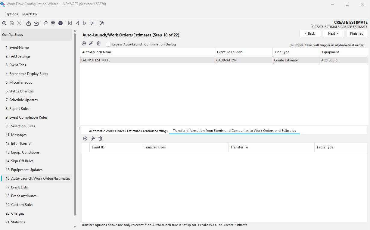 The most important step to set up when creating this event is the Auto-launch rules - See Workflow Config Step. 16: Auto-Launch/Work Orders/Estimatesfor more details