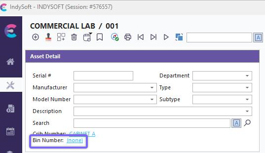 Bin Numbers are selected from the Equipment View Tab...Additional Info...Bin Number field. Bins are keyed according to Company and Crib Number. Bin Number generally represents the 2nd part of a 2-part key for Storage Location (Crib/Bin). When a piece of equipment is out on the floor or has been moved as a result of an event, generally, the 'Location' and 'Sub-Location' fields are used to track the equipment until it is eventually returned to its storage Crib and Bin.