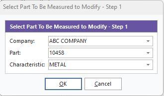 Allows you to remove, add, or modify a default Parts to Be Measured item for all selected equipment. If you are adding or removing a default Part to Be Measured, select the new default Part to Be Measured (or the part you are removing) from the dialog. If you modify a default Part to be Measured, select the default Part to Be Measured that you would like to modify from the first dialog, then select the default Part to Be Measured that you would like to change to in the second dialog. In effect, this can replace one default Part to Be Measured with another default Part to Be Measured.