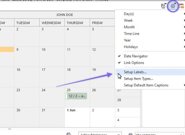 To access work order information, double-click on it in the grid (see Grid View). Use this configuration dialog to modify the labels available for each calendar item's 'Label' field, as shown below: