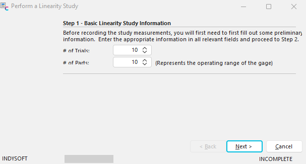 Studies - Basic Linearity Study Information - Step 1 (Linearity)