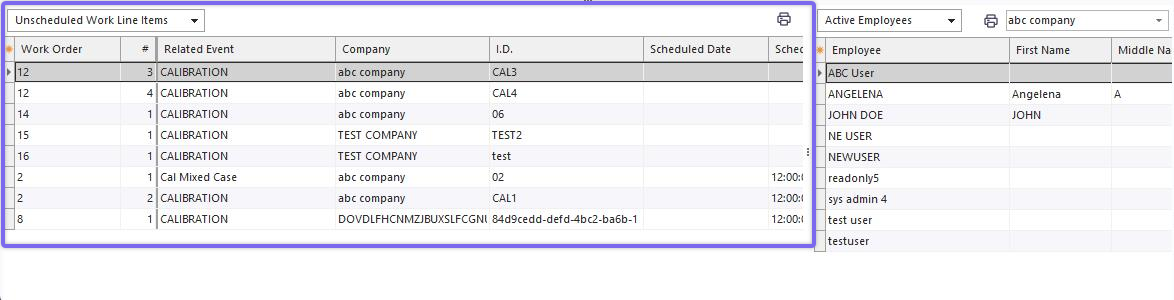 ·Right-mouse click option for 'Clear Assignment Fields for Selected Item' - clears employee and employee group fields, effectively moves the record into the lower-left grid for 'Unassigned Items' - when viewing 'Unscheduled Work,' it only makes sense to use the 'Clear Assignment fields' option