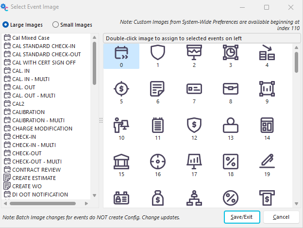 IndySoft includes 109 button icon images for your use. You can assign up to 10 custom images in the system, which can also be used as event images.