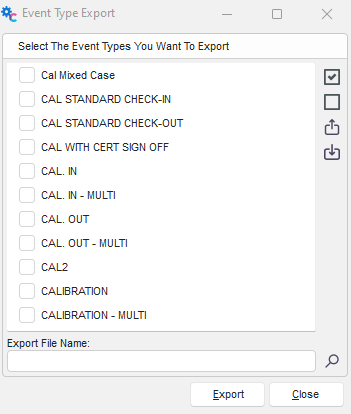 Clicking this icon will allow you to select any of the events in the system to export to a file.