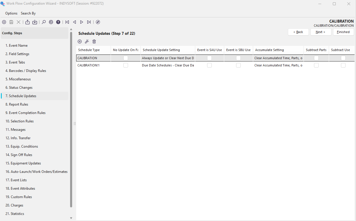 Choose from this list of Schedule Types the equipment schedule that you wish to update after completing the current event.