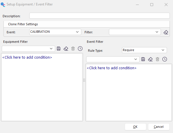 Equip. / Event Filter - an optional equipment/event filter can be associated with each rule. Press the ... button to add/modify these filters.