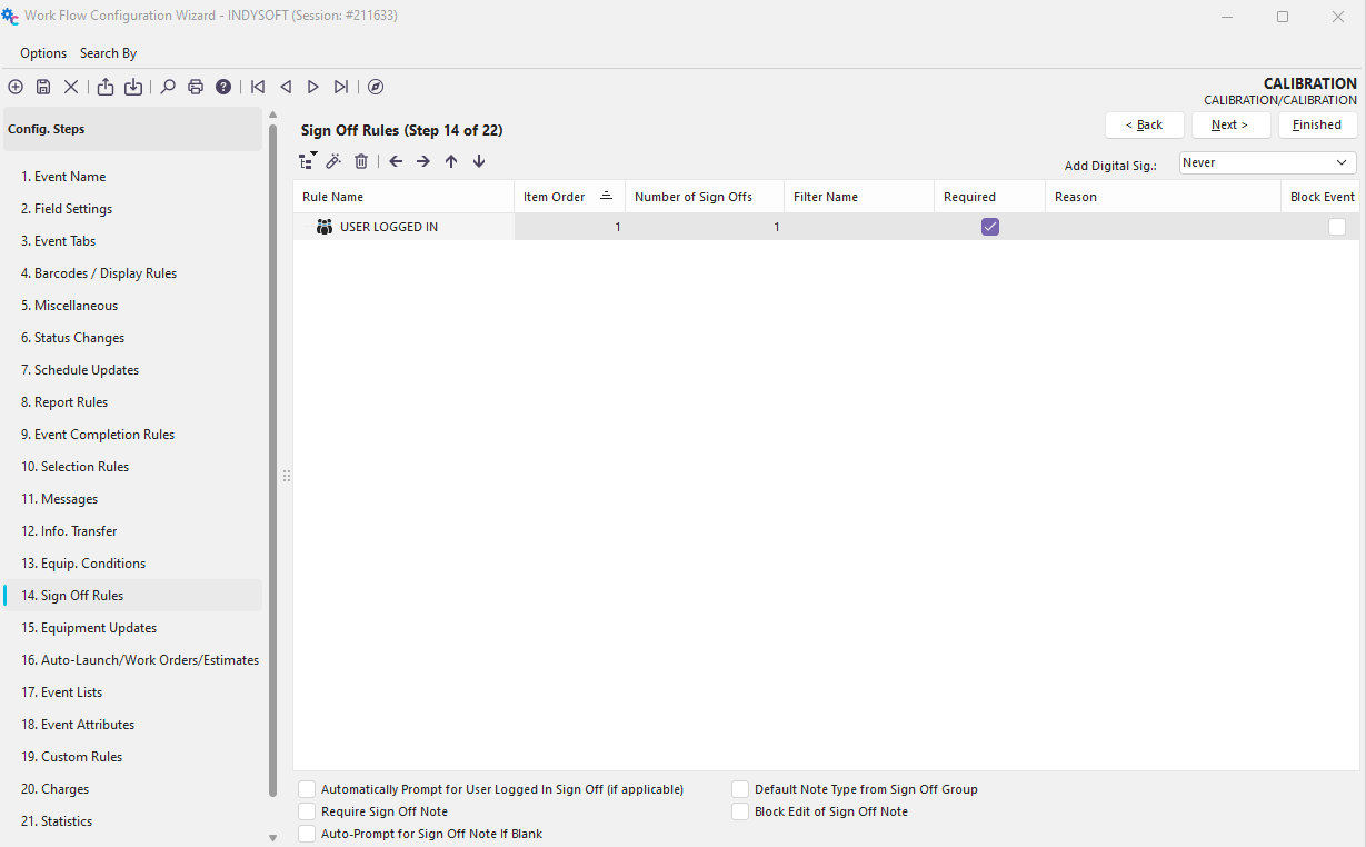 Configuration Wizard - Step 14 of 22 - Sign Off Rules