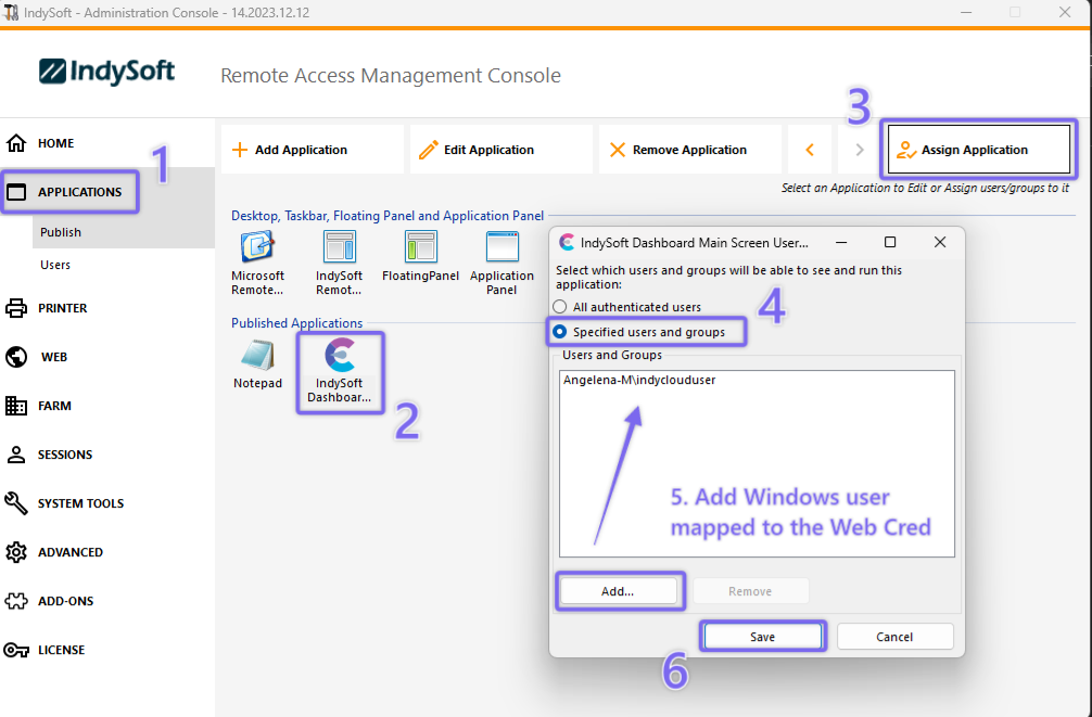 Next, we will map the Windows user to a designated Web Credential in the Admin Tool. This Web Credential will always be used to start the RDP session, bypassing the need for Windows user credential entry and bringing users directly to the IndySoft login screen.