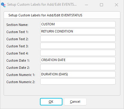 Setup Custom Labels for Add/Edit EVENTSTATUS