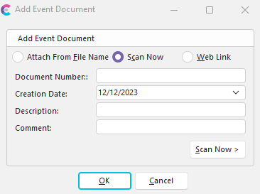 If you are scanning an Event Document, you will be prompted for the following: