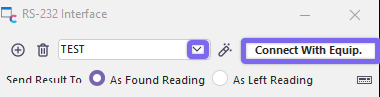 Using this drop-down, select the profile that matches the RS-232 Gage that you are using. To connect to the gage, press 'Connect with Equip.'