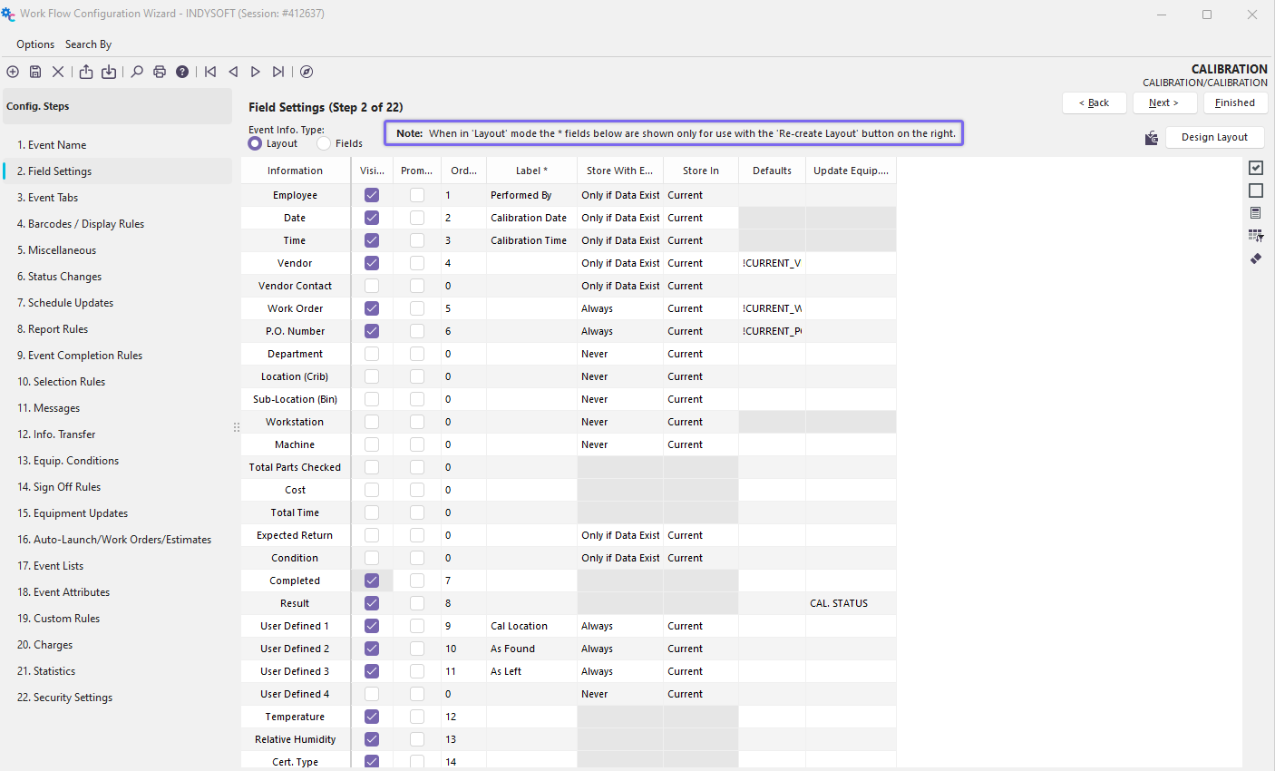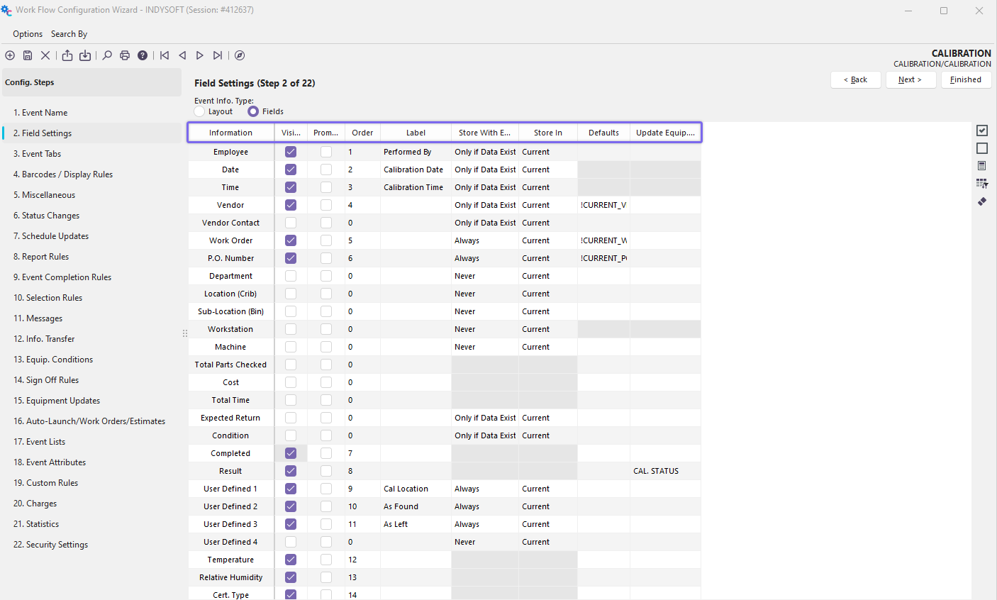 Configuration Wizard - Field Settings (Step 2 of 22)