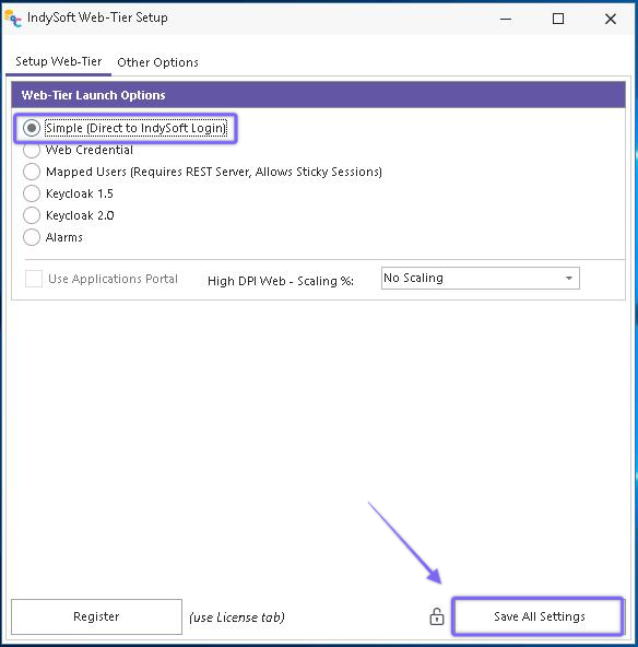 • Select the 'Simple (Direct to IndySoft Login)' radio button
