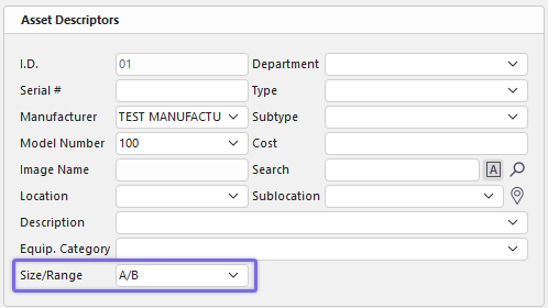 Add/Edit Lab Custom 1 (aka "Size / Range" in this example)