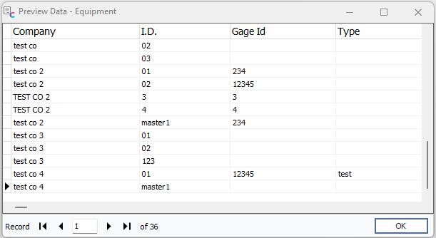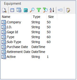 In the next window, click the 'Choose Fields' option, then select Fields COMPANY, GAGE_SN, GAGE_ID, GAGE_TYPE, SUBTYPE, PURCHASE_DATE, RETIRE_DATE, and ISACTIVE as in the window below: