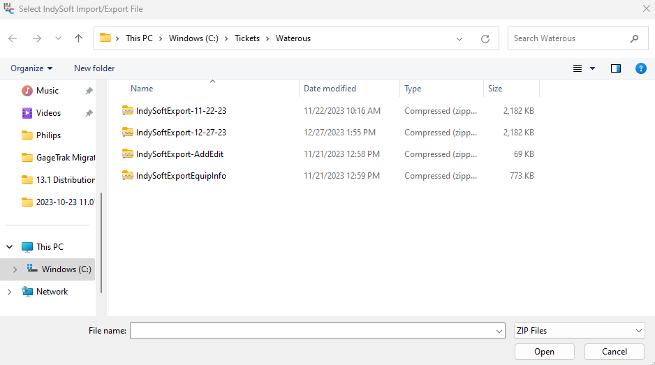 Select IndySoft Import/Export File