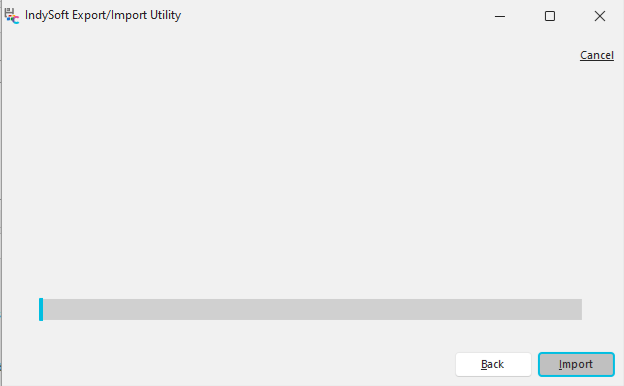 You will see a progress window like the one below during the import process. First, the progress bar will complete 'setup' operations for all import groups, then the progress bar will follow the import through all groups, counting up to 100%.