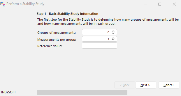 In Step 1 (shown below), enter the number of groups of measurements, the number of measurements per group, and the reference value.