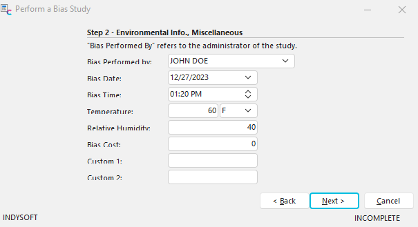When the study was begun, IndySoft automatically inserts this date and time, but it can be overridden here.