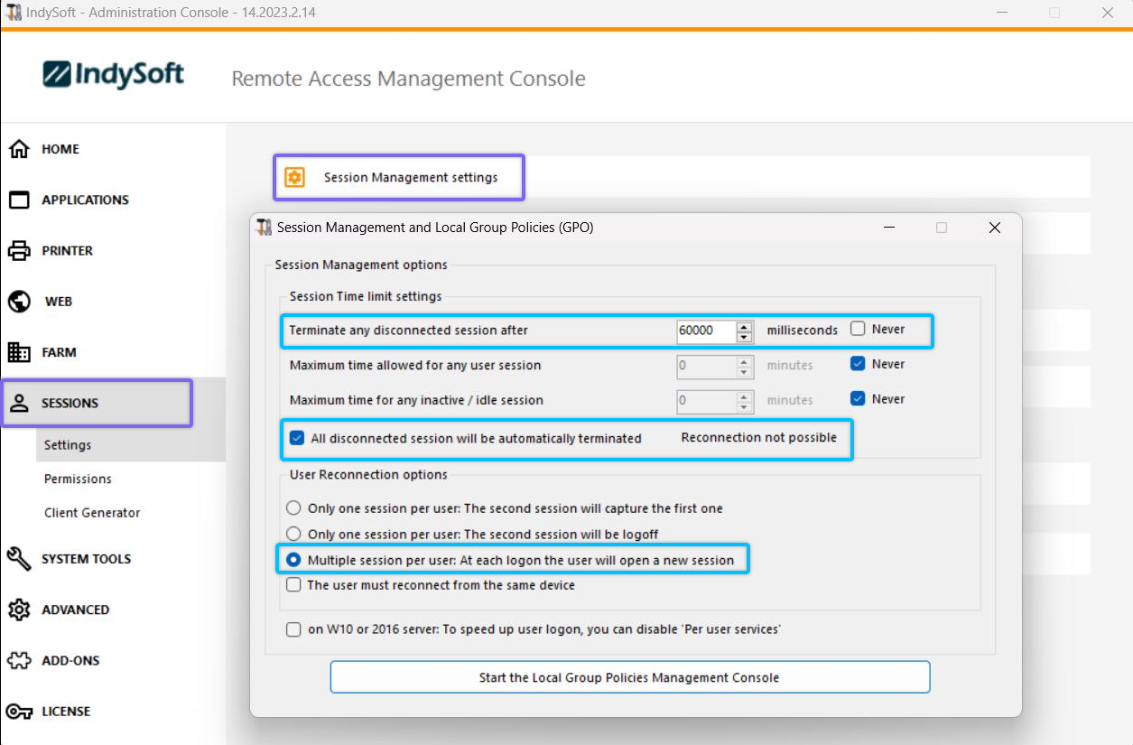 • Leave ‘Max num of concurrent sessions’ blank (unlimited) and Save