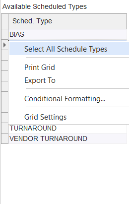 'Select All Schedule Types' can be used for quickly selecting all types.