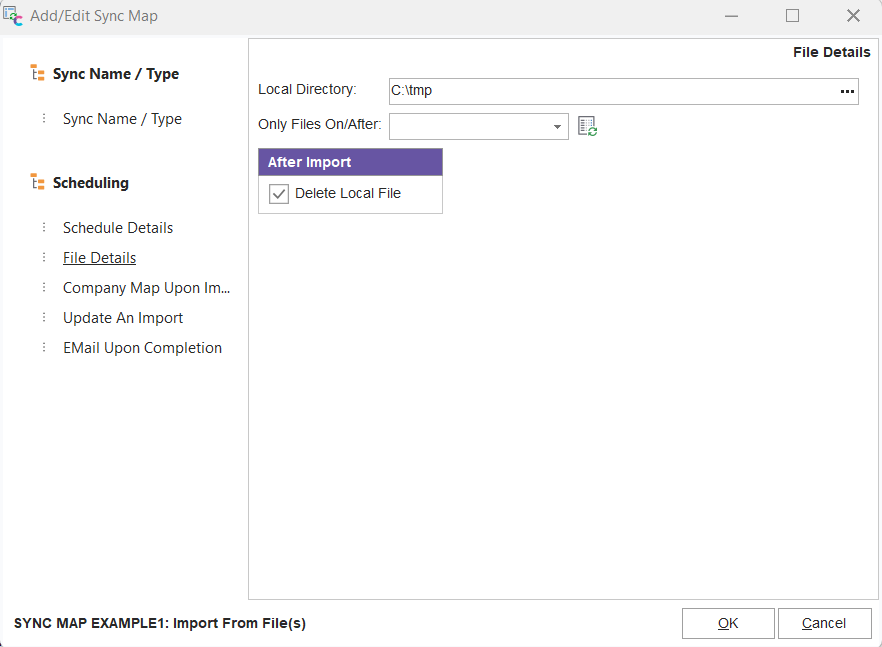If the Sync Type is either 'Download & Import' or 'Import From File(s),' then these options will be available;