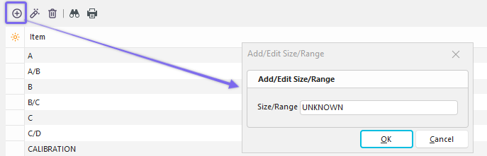 Add/Edit Lab Custom 1 (aka "Size / Range" in this example)