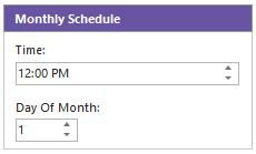 Monthly alarms are designed to run once per month at a specified time on a specific day of the month. To use a monthly alarm, first select the Monthly alarm selection item from the Alarm Type tab. Next, click on the Times tab and set the day of the month and the exact time to execute this alarm.