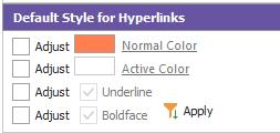 If the 'Apply Hyperlink Style' button is unchecked, the Default Style adjustments noted above will be skipped. |