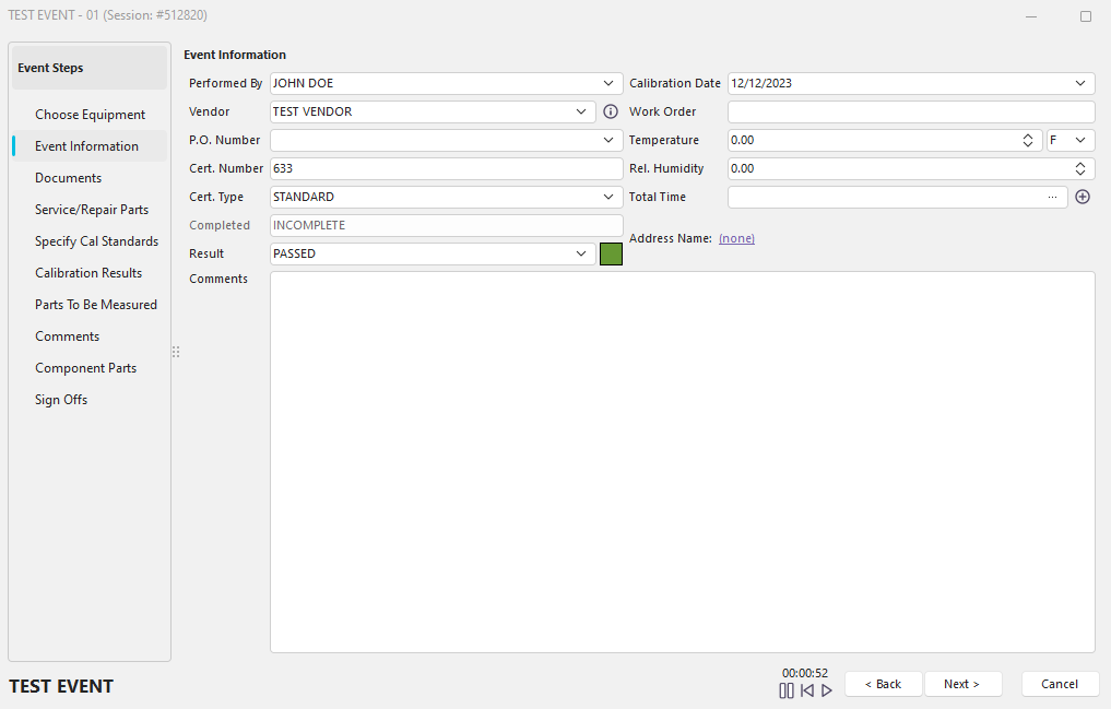 Whether the current event is complete or incomplete, if an event is incomplete, then upon pressing the 'Finish' button, the user will be asked whether the current event should be marked as incomplete. Also, if the 'Sign Offs' tab is being used, the 'Sign Offs' tab will take control of setting the Completed value.