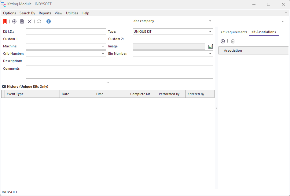 Adding a new kit is similar to adding a new gage from the IndySoft main screen. Press the 'New Kit' button on the top of the Kitting main screen.