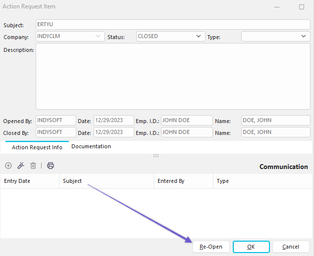 Action Requests - Re-Open Button