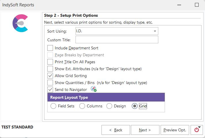 Standard Reports - Setup Print Options