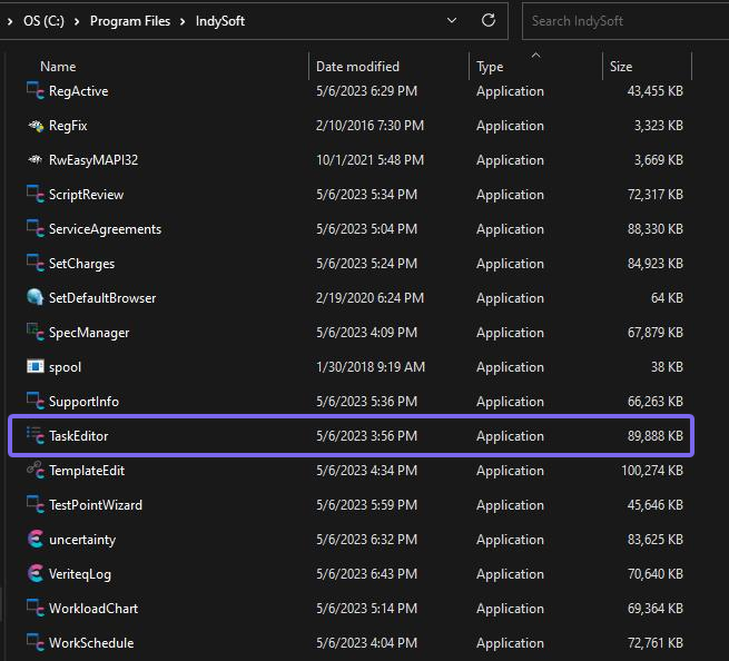 The IndySoft Task Editor Utility can be found in your file explorer by navigating to: