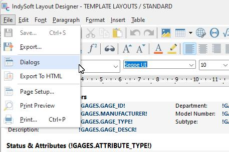 Template Layouts...Setup Dialogs