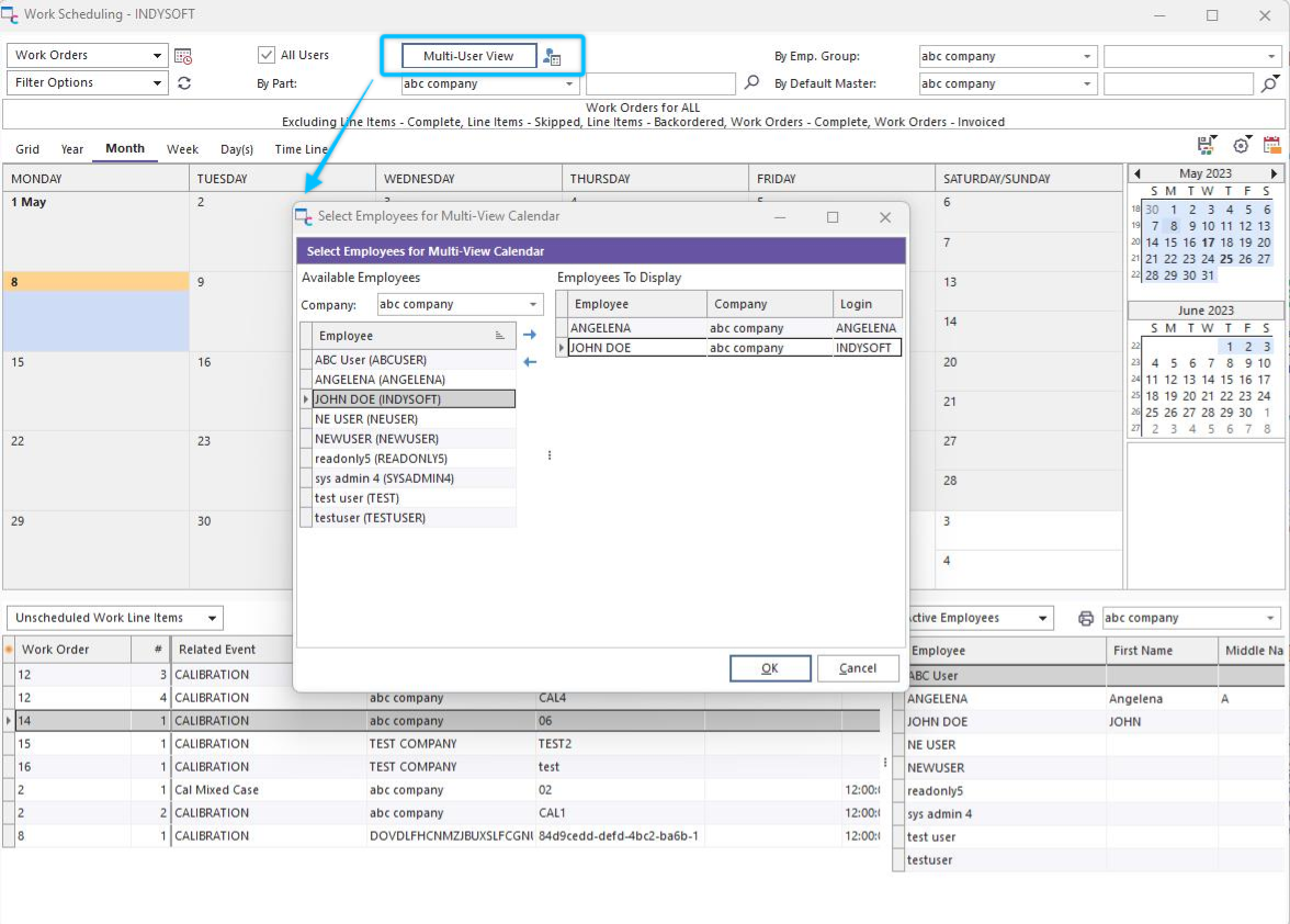 Filter by employee, and you can set up parallel calendars. Select the employees out of the Available list and click OK.