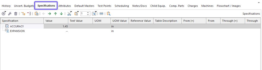 When the IndySoft Uncertainty Module is installed, you will notice a new tab called 'Uncertainty' on the IndySoft main screen. This tab allows for inputting two types of information: Attributes and Budgets. Add these tabs to the Equipment View screen using the "Setup Dialogs" option (System Admins). In newer versions, Uncertainty Attributes are now called Specifications (Specs).