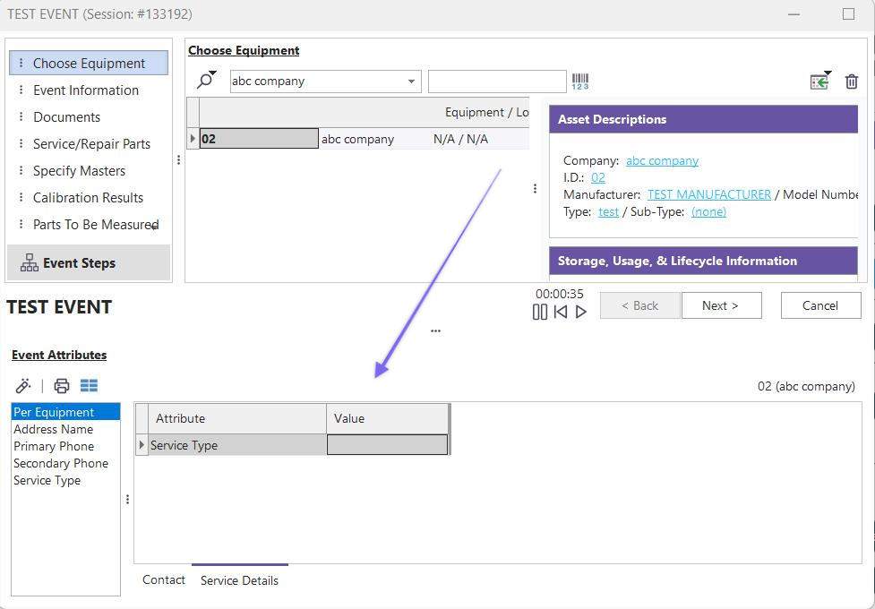 If 'All Equipment' is selected, the attribute values are shown as a summary across all the selected equipment in the event. For instance, say there are two assets in the event: 'ABC123' and 'ABC234', and the value for the 'Service Type' attribute for both assets is 'REPAIR.' The 'Service Type' attribute will be displayed as 'REPAIR' in that case. But if the 'Service Type' attribute for 'ABC123' was 'REPAIR' and the 'Service Type' attribute for 'ABC234' was 'VALIDATION,' then the 'Service Type' attribute would display as '(various).' However, if the Attribute Display Mode was set to a select asset, say 'ABC123,'...then the 'Service Type' would display the value for the selected asset, which in this example is 'REPAIR.' Selecting 'ABC234' would display 'VALIDATION' for 'Service Type.' Important: when the current asset is changed in the event's 'Choose Equipment' grid, the Attribute Display Mode is automatically changed to the current asset. So, if you temporarily set the display to 'All Equipment' or to an asset that does not match the asset currently selected in the 'Choose Equipment' grid, then you are making an exception. Using the 'ALL EQUIPMENT' mode helps set attributes quickly across all assets.