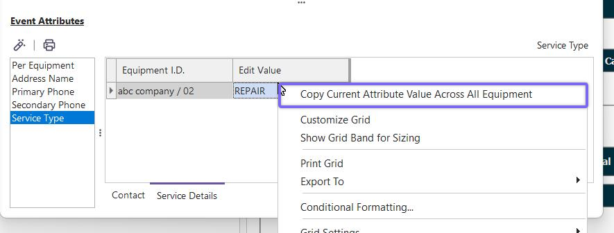 Grid-Based Event Attributes - Copy Current Attribute Value Across All Equipment |