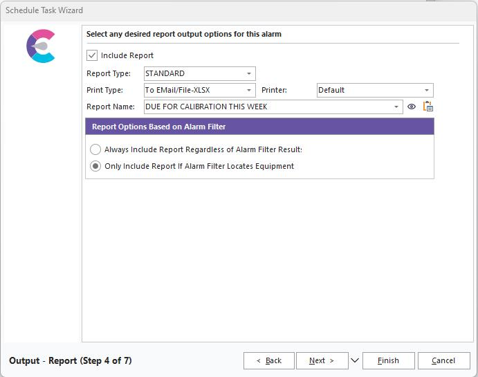 ·Only Include Report if Alarm Filter Locates Equipment