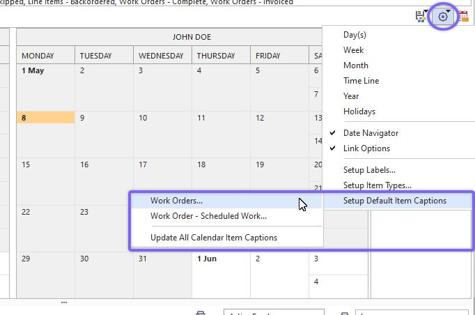 To access work order information, double-click on it in the grid (see Grid View). Use this dialog to configure the item captions and item memo text for scheduled Work Order items and scheduled Work Order Line Items. These two values for each linked calendar item are noted below: