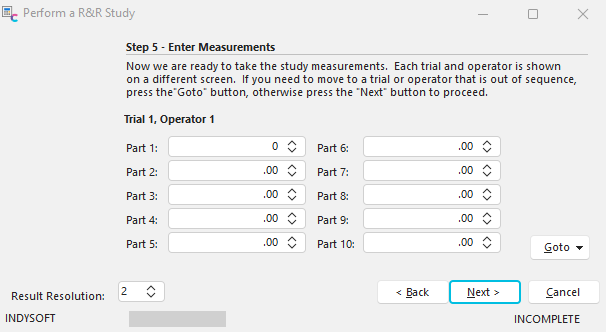 Studies - Enter Measurements - Step 5 (R&R)