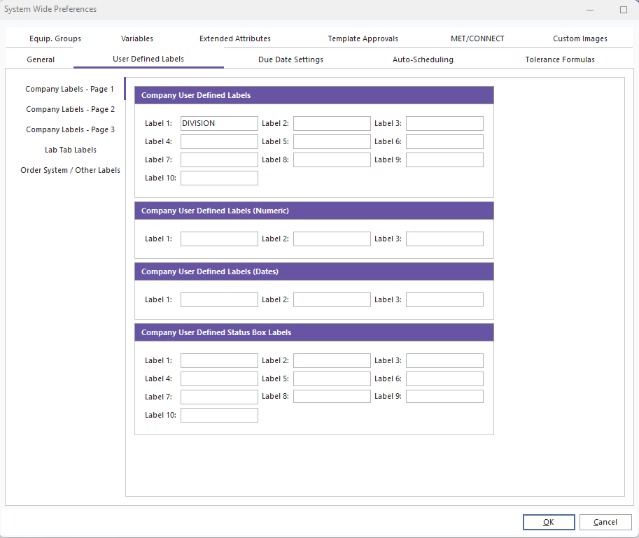 System-Wide Preferences...User Defined Labels