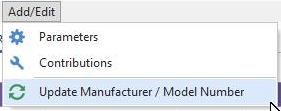 Within the Add/Edit dropdown, you will notice 3 options: Parameters, Contributions, and Update Manufacturer/Model Number